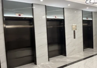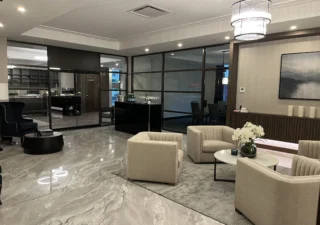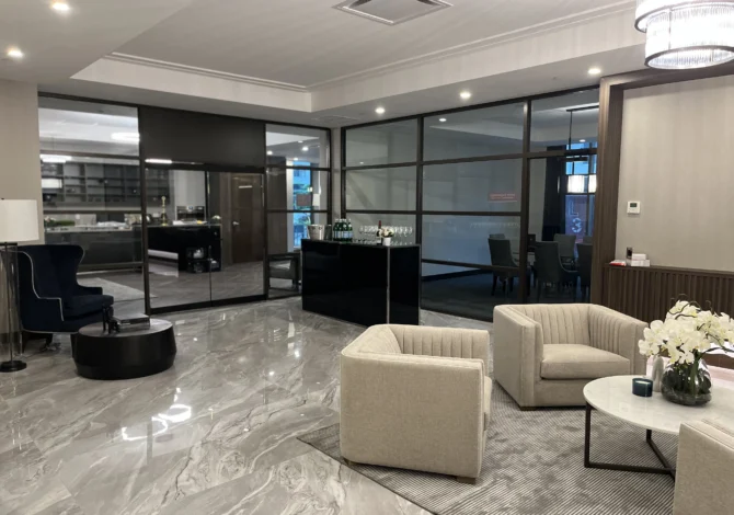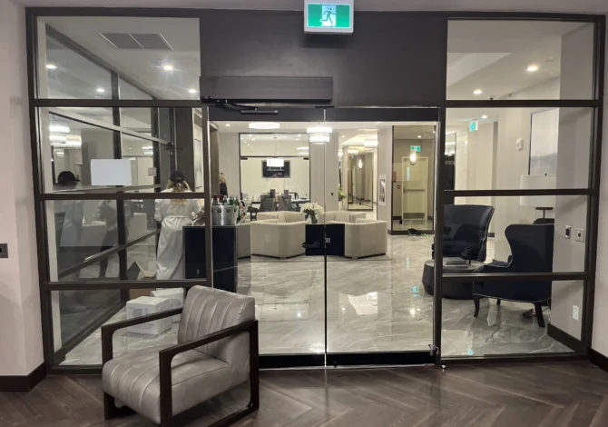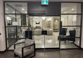 Interesting Fact / Project Highlight: Due to multiple hardware changes throughout the project, we had to adapt and develop tailored solutions to ensure specific hardware designed for 1 ¾” wood doors would function properly with 12mm glass doors.